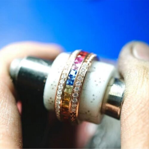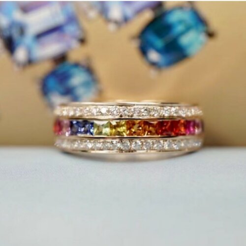 18K Rose Gold Natural Diamond Rainbow Sapphire Ring